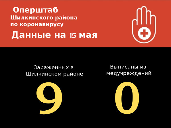 По информации оперативного штаба по Шилкинскому району на 15 мая, на территории района зарегистрировано 9 лабораторно подтвержденных случаев заражения COVID-19. Заболевания зарегистрированы в Шилке, Первомайске, Казаново и Нижней Хиле. В настоящее время, все заболевшие находятся в специализированных моностационарах региона.