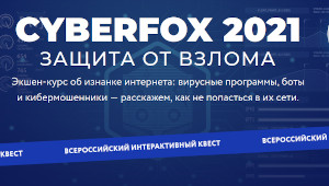 Онлайн-школа «Фоксфорд» с 26 апреля по 30 августа проводит Всероссийский интерактивный квест по кибербезопасности и безопасности в интернете для школьников 1-11 классов «CyberFox 2021: защита от вирусов». Принять участие в нем можно на сайте https://cyberfox.foxford.ru/