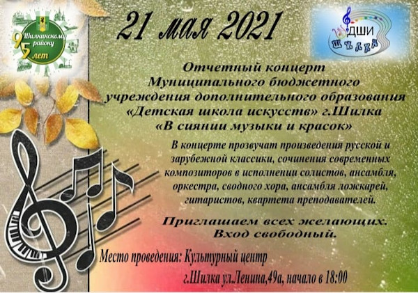 Погрузиться в мир классической, народной и современной инструментальной музыки, оценить творческие успехи юных музыкантов смогут все любители музыки на отчетном концерте Детской школы искусств 21 мая в 18:00 часов в Культурном центре. Вход свободный.