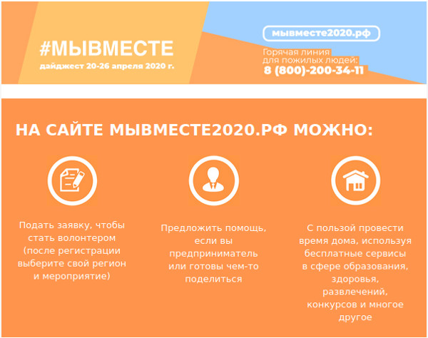 Акция взаимопомощи #МЫВМЕСТЕ объединила уже более 80 000 волонтеров из 85 регионов страны, которые уже помогли более чем 100 000 людей.